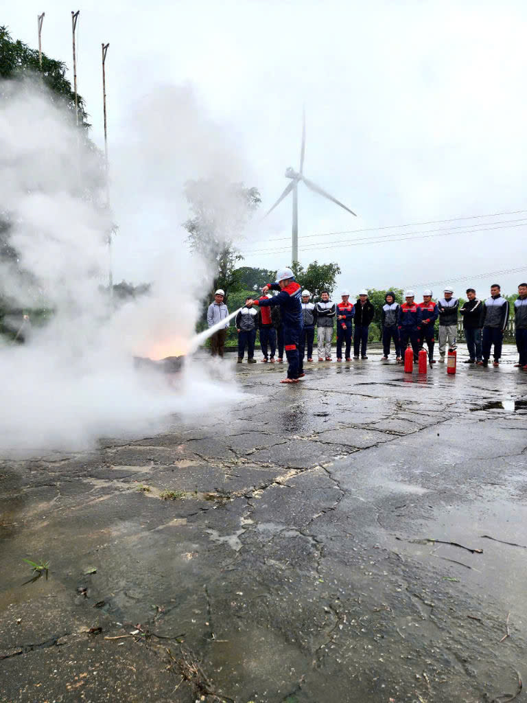 Trong thời gian vừa qua, công ty cổ phần quản lý và vận hành nhà máy điện Việt Nam (VINAPOM) đã tổ chức chương trình tập huấn phòng cháy chữa cháy (PCCC) cho toàn thể nhân viên với mục tiêu nâng cao ý thức và kỹ năng đối phó với các tình huống khẩn cấp. Chương trình diễn ra tại khuôn viên nhà máy điện gió Hướng Hiệp 1, với sự giám sát trực tiếp từ cán bộ PCCC tại địa phương.a